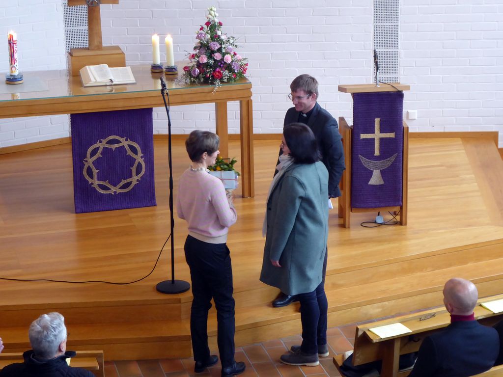 Eröffnet wurde der Gottesdienst von Pfarrerin Eva-Katharina Gericke, die zusammen mit Pfarrer Roland Dürmeier, Prädikanten, Lektoren und dem Kirchenvorstand die Lücke überbrückte, die durch den Tod von Pfarrerin Annette Reidt entstanden war.